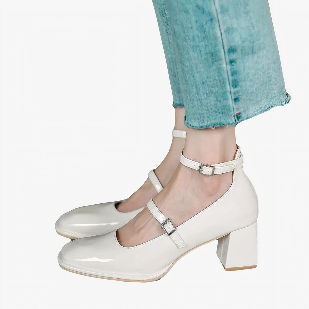Våra ballerina loafers med klack i lack finns i en rad livfulla färger: rött, beige, svart och vinrött. Varje färg har valts ut för att perfekt komplettera din mellansäsongsgarderob.