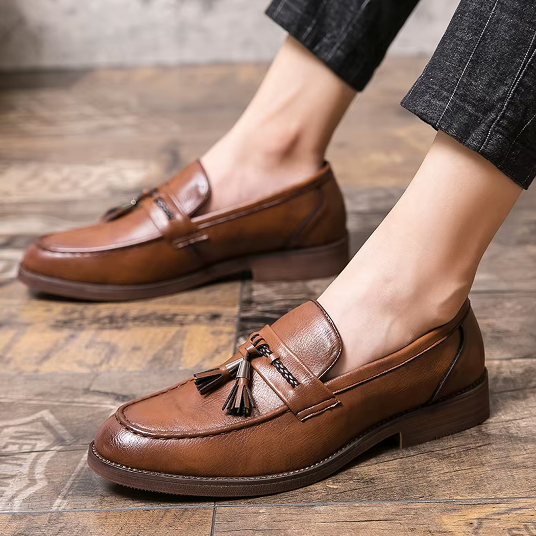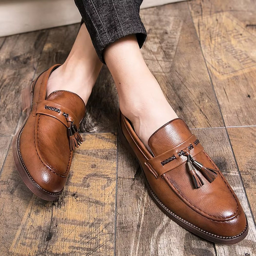 Eleganta loafers i läder med tofs för herr