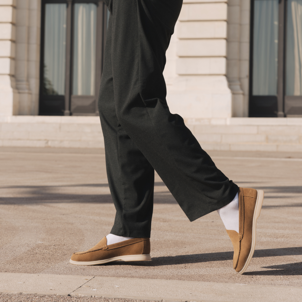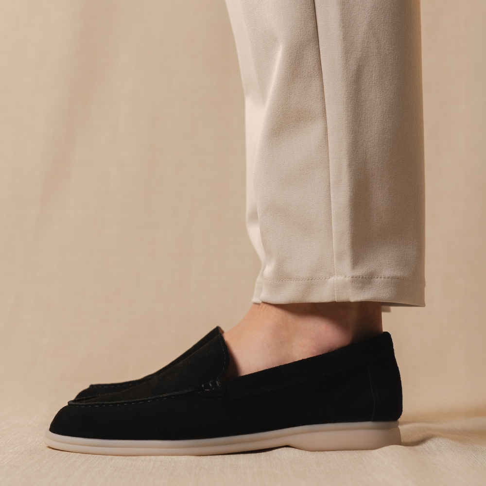 The Yacht är ren elegans. Dessa lyxiga loafers är tillverkade av lyxig mocka och omsorgsfullt bearbetade och utmärker sig genom sin eleganta, minimalistiska design. Varje detalj är genomtänkt för att återspegla en tidlös stil och avslappnad lockelse, perfekt för kräsna män.